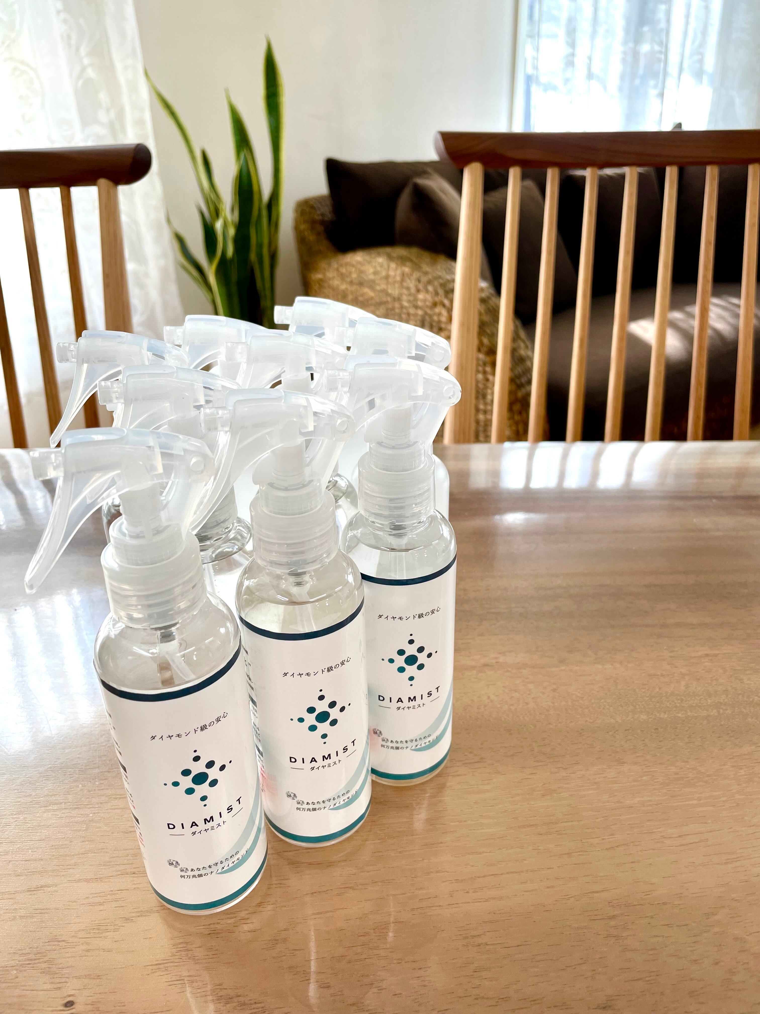 日常触れる場所 ドアノブ テーブル 椅子などへスプレーすることで ナノダイヤモンド触媒がコーティングされ 付着したウイルスや菌が不活性化され クリーンな環境を持続できます。接触感染のリスクを軽減させるスプレーです。高温でも問題なく触媒効果を発揮しますので 車のハンドルなどへのスプレーも効果的です。(車での保管はできません)